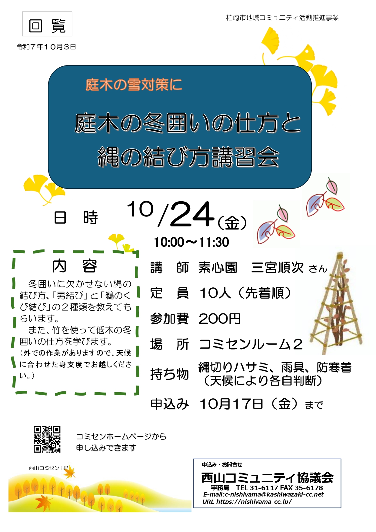 10/24 庭木の冬囲いと縄の結び方講習会