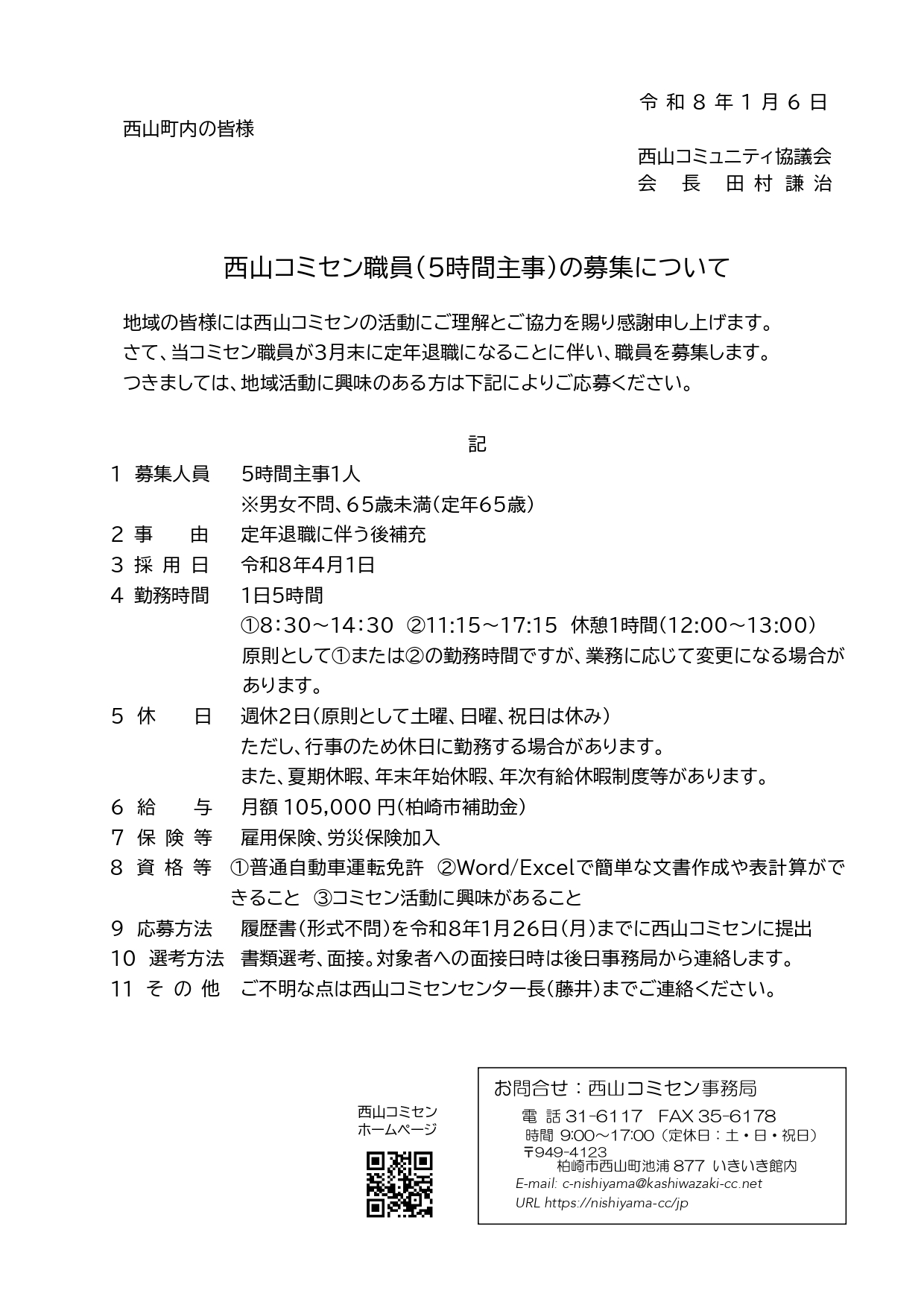 E-mail : c-nishiyama@kashiwazaki-cc.net